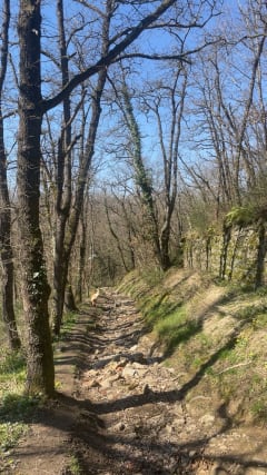 Super ! seulement une cinquantaine de mètre de routes, sinon ce sont des sentiers pédestres, champs, et forêt. Super agréable quand il fait beau