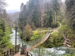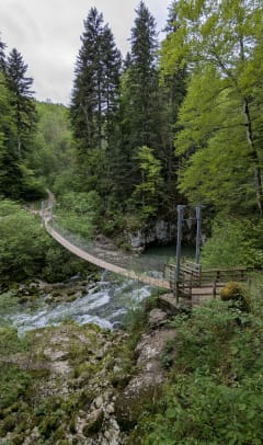 1ere partie (jusqu’au 2ème pont suspendu) très sympa, sentier très facile le long de la rivière…après ça se complique, fort dénivelé positif puis négatif limite dangereux en arrivant sur le viaduc (il faut avoir de bonnes chaussures !) et qui n’offre pas vraiment d’intérêt Mon conseil : pour faire une ballade familiale facile et agréable, faire demi tour au 2ème pont et revenir par le même chemin !
