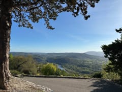 Emprunter la petite route au départ de Sampzon. Admirer le magnifique paysage au fil de la montée par un chemin goudronné.