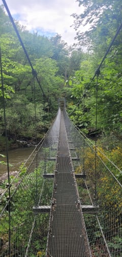 Se garer après le pont puis prendre la sente qui monte de l'autre côté du pont pour arriver sur le plateau, la trace vous mènera jusqu'aux anciennes forges. Au retour, vous rejoindrez les gorges par un chemin bordé d'arbres centenaires puis une sente accidentée et caillouteuse avant de traverser l'auvezere sur un pont suspendu et suivre la rivière avec le murmure de ses chutes pour revenir au parking. Vous pouvez aussi vous garer au parking des forges. Bonne balade.