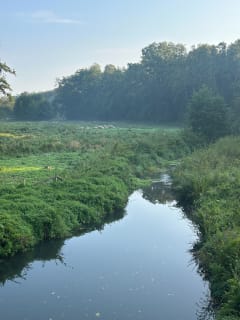 Puis le sentier devient champêtre avec les pâturages environnants. En franchissant l'Iton, on remarque les aménagements et le profilage de la rivière suite à la suppression d'un ancien étang.