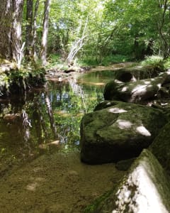 Un paysage de désolation sur la moitié du trajet : coupes rases et plantations de pins... Dommage car le début de balade était sympathique avec la cascade et le petit village.