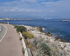 Quelques passages ombragé mais pour l’essentiel au soleil. Première partie faisable avec poussette. Oct 2025 : travaux sur certains des tronçons - plage de la garoupe, et à Juan les pins