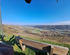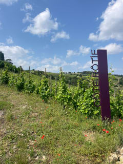 Début en descente bien raide (attention, glissade assurée par temps humide !) avec un très beau paysage, balade à plat le long du Rhône en zone ombragée, remontée jusqu'au belvédère très sympa au milieu des vignes ! (poussette impossible 😉)