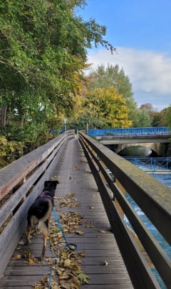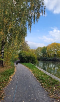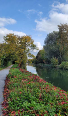 Promenade au fils de l'eau entre la Scarpe et la Deule sous les arbres et le long du canal.