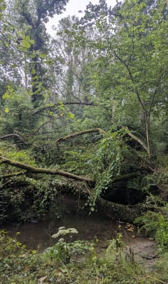 Début de parcours encombré de ronces, orties et hautes herbes. Puis joli chemin près du ruisseau