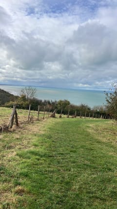 Petite balade au soleil le long des falaises avec de beaux paysages vallonnés et verdoyansts, avec au loin la mer, des points de vue sur Le Havre et sur Ouistreham. Pas adapté pour les personnes à mobilité réduite.