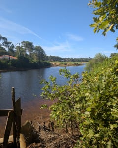 Depuis la Plage Sud, on déambule d'abord à travers rues et ruelles, le tout en longeant le fleuve côtier du Courant de Mimizan.