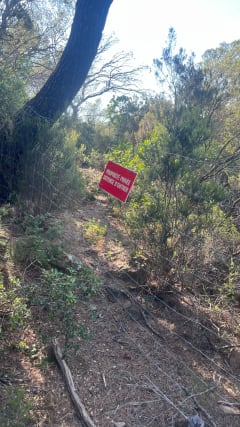 J’ai galéré à trouver le point de départ parce qu’ il n’y a pas de chemin, l’application me faisait prendre le point d’arrivée. Il est à signaler qu’on se retrouve à gravir la colline par une draille ! Ce n’est pas accessible à n’importe qui et il faut une certaine condition physique. Sans mes bâtons je n’y serai probablement jamais arrivée. Je n’ai pas fait le tour du fort, la végétation a repris le dessus j’ai pris la dfci. Après le barrage le chemin est une propriété privée.