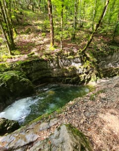 Découvrez les pertes de l’Ain en randonnée, une curiosité géologique du massif du Jura (39). Venez à Bourg-de-Sirod voir ces cascades qui jaillissent de gorges aussi étroites qu’impressionnantes. Moins célèbres que les cascades du Hérisson, les pertes de l’Ain offrent un spectacle saisissant au cours de balades accessibles à faire en famille, à quelques kilomètres de la source de l'Ain. Laissez-vous guider par notre application de randonnée 100% gratuite, pour profiter à 100% des pertes de l’Ain.