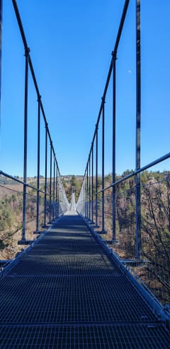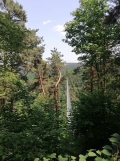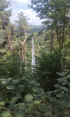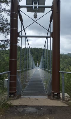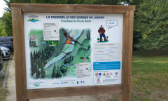 Passerelle très sympa, balade dans les bois et les champs pour y accéder. Chemin bien balisé. Présence de tables de pique-nique, structure de jeu et sanitaires au début du parcours.