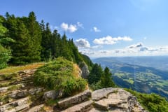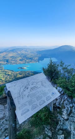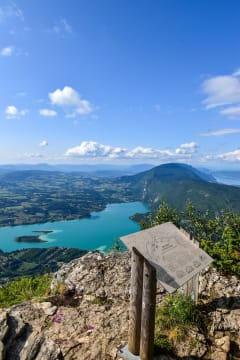 Au sommet sur les crêtes, un sublime panorama se dévoile sur le lac d'Aiguebelette. C'est d'ailleurs sous les pieds du randonneur que l'eau alimente le lac, sous les lapiaz et roches calcaires.