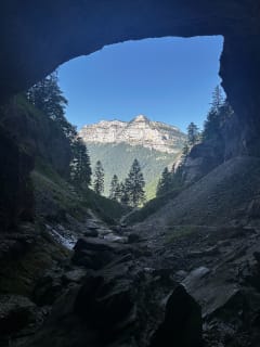Impossible de passer et trouver un chemin après la grotte, on a pensé qu’un éboulement avait bloqué le chemin Sinon très chouette, ça grimpe mais c’est sympa au frais dans la forêt, puis la fin de la balade au bord du ruisseau très agréable avec la canicule