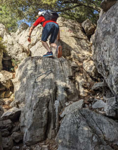 Très belle balade variée, qui passe par le pont du hasard, serpente en sous bois dans un chaos rocheux, points de vue sur les Cévennes puis sur le vignoble de la gravette et Corconne, sentiers taillés dans la roche. Difficulté moyenne (quelques passages de varappe avec main courante ou marches métalliques).