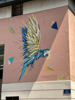 Bcp de véhicules devant les street art. passerelle Jean Reymond fermée depuis octobre 2024 pour réfection mais rien n'est en court. on ne trouve pas toujours les street arts.