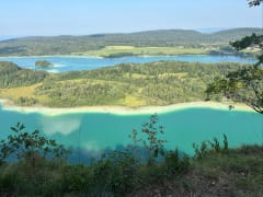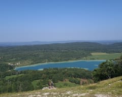 Entre base de loisirs et nature préservée, plages de sable fin et sentiers de randonnée balisés, le lac de Chalain réunit les amateurs de rando et de pédalo autour de ses eaux incroyablement vertes, résultat d’un processus géologique enclenché il y a plusieurs milliers d'années. Au pied du premier plateau du massif jurassien, ce lac d’origine glaciaire étale ses 232 hectares de lagon turquoise entre Fontenu, Marigny et Doucier, falaises calcaires et forêt de résineux. La beauté du site naturel, le faible dénivelé et la possibilité de se baigner en font une destination rando familiale parfaite.
