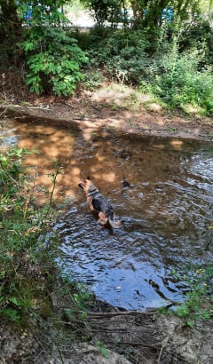 Balade à travers les bois, petite rivière pour rafraîchir le chien, très facile. On a aperçu un chevreuil, bruit des cigales apaisant. Je recommande.