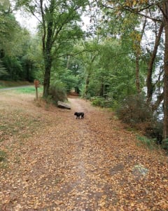 Une très jolie promenade au cœur de la forêt, longeant un étang paisible. L’ambiance était douce et silencieuse, avec les arbres qui formaient une voûte naturelle au-dessus du chemin. Une portion du parcours se faisait sur du goudron, mais cela ne gênait en rien : la petite route était bordée d’arbres, immergée dans la verdure, et gardait tout son charme. Un moment simple, ressourçant, et parfaitement breton 💚