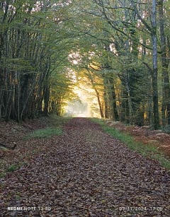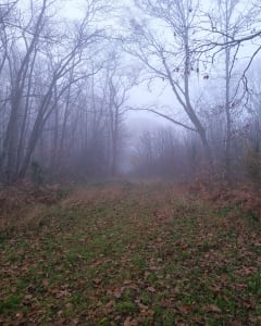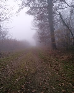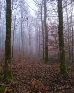 Petite randonnée en forêt tranquille avec brouillard automnale.