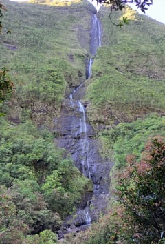 Avant d'arriver à Salazie, on aperçoit cette haute chute de 600 m sur la gauche de la route. Se garer immédiatement après le pont (restaurant de la cascade et chapelle) de la rivière du Mât après Petit Trou. Emprunter le chemin (kiosque à picnic en haut des escaliers), puis le sentier qui suit la rive gauche du Bras de Caverne jusqu'à la chute. Attention aux glissages sur les gros galets en passant le bras pour se rendre au pied de la cascade. Les différentes traces au niveau de la rivière sont dues à l'hésitation pour choisir le bon tracé et éviter la baignade.