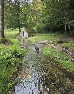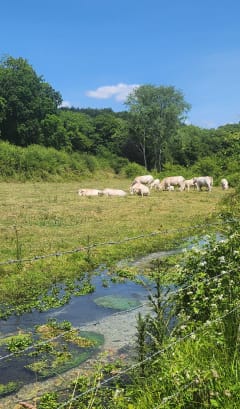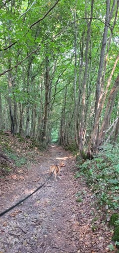 Superbe balade avec un petit ruisseau au debut de la balade, on passe par beaucoup de forêt l'idéal pour les toutous il y a quelques petites portions de route mais très peu fréquenté donc pas très dangereuse et une magnifique vu sur un domaine ! Une très belle expérience autant pour les chiens que pour l'humaine 😁