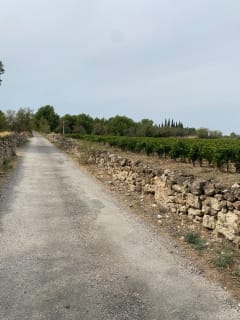 Balade dans la première partie en longeant les falaises puis on bifurque pour marcher sur des chemins de vignes rencontrant de vieux murs de pierre, sympa à faire avec un animal.