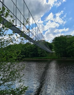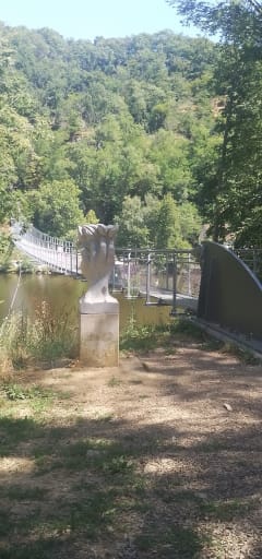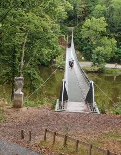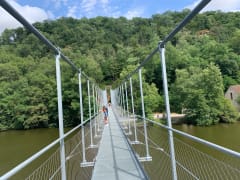 Petite balade sur la passerelle himalayenne au6dessus de la Creuse. Passage de ruisseau à gué très ombragé, tout au bord de la Creuse. Parcours pour bons marcheurs, surtout à la fin.
