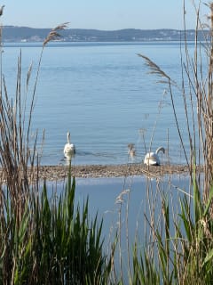 Départ du pont Flavien, un petit passage dans un lotissement vous amène au lavoir, et c'est parti pour une balade dans les roseaux au bord de l'étang de Berre. On peut voir des flamands roses, des cygnes...