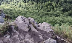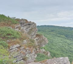 On est au cœur du site de la Roche d'Oëtre et on s'apprête à faire une excursion de derrière les fagots sur l'un des rares belvédères naturels de l’Ouest de la France surplombant de plus de 100 mètres les gorges boisées de la Rouvre.