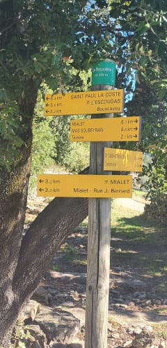 Départ de Paussan à la croisée de la bonté. Parking 100m avant. Au camping "la rouquette" traverser la route et monter le raidillon vers le musée du désert (musée sur le protestantisme) Si ouvert aller à la Clede ou Ludo vous accueillera avec le sourire. Montée vers la Baumelle puis suivre le Dfci puis une petite route peu fréquenté serpentant jusqu'à La Routière. Redescendre vers Mialet par un sentier assez pentu. A Mialet allez vous désaltérer " chez Mialet" ou vous restaurer ils sont sympa aussi. Traverser le village et passer le pont des Camisards (beau vestige de l'époque) puis tourner à gauche en suivant le gardon de Mialet Longez les falaises. Ne montez pas aux Toures restez sur la petite route qui vous ramène au point de départ