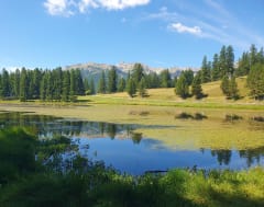 Belle randonnée dans les bois au départ de château queyras. 2 belvédères qui surplombent le massif du queyras. Arrivée au lac pour une pause pique-nique. Endroit calme et paisible.
