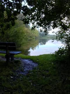Tour du lac du Plessis, Départ du Parking pour Voiture, marche Normale, pas de dénivelé pour tous les âges, quelques bancs le long du parcours pour faire une pause en regardant le paysage. à partager avec les pêcheurs.