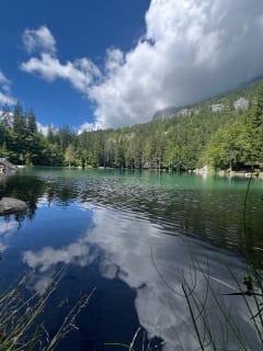 En route pour le massif des Aravis, côté Haute-Savoie, où se trouve un petit lac d’alpage, accessible uniquement par des sentiers de randonnée. Le lac de Lessy se trouve sur la commune de Glières-Val-de-Borne, dans une combe au pied des impressionnants pic de Jallouvre, Buclon et aiguille Verte, à 1 730 mètres d’altitude. Rejoignez sans plus attendre cet écrin de nature d’Auvergne-Rhône-Alpes, situé sur le GR® 96 "Pré-Alpes de Haute-Savoie", en suivant notre application de randonnée gratuite !
