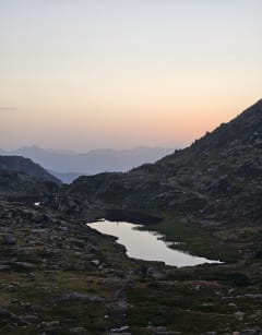 La montée comme la descente est progressive. Le D+ est bien réparti sur les km, en revanche il n'y a pas d'ombre. Tres beau notamment au couché du soleil où la vue est exceptionnel. Rappel bivouac : Tente montée à partir de 19h et retirée à 9h ! Si personne ne joue le jeux, nous n'auront plus le droit de bivouaquer nul part ! Chiens interdits. Pas refuge la-haut.