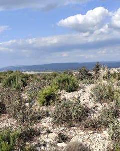 Voilà, on est à Lançon-Provence et cette boucle de cinq kilomètres dans ce petit coin de paradis, c'est de l'or en barres! On longe dans un premier temps le site du champ de tir et de manœuvres sous-lieutenant Campagnole avant de randonner à travers des champs d'oliviers, de vignes et de blé. Tellement bucolique!