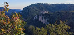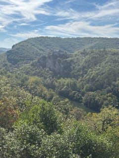 Un circuit en sous-bois le long du Cabéou, puis sur le causse entre des murets de pierre sèche, pour finir en apothéose, en bord de falaise, avec vue sur la vallée de l'Aveyron et les châteaux de Bruniquel !