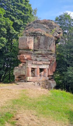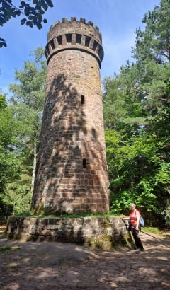 Le départ ce fait de l’ancienne gare de Niederbronn en cours de rénovation un peu de marche pour allez au début du sentier. Mais possibilité de se garer à cet endroit . La première partie jusqu’au château est la plus dure, car c’est grimpette sur 3 petits km, mais bien balisé et avec des panneaux explicatifs sur les différentes essences d’arbres, mais rien est impossible. Après direction les Pierre à cupule, ce sont des cavités en forme de bol dans quelque large bloc de grès sur un joli sentier sans dénivelé Et pour terminer la visite de cette belle randonnée, le détour par la tour wasenkoepfeld Une jolie tour, très bien entretenu. Dommage que les arbres soient plus hauts qu’elle. Pour la fin du parcours, possibilité de descendre jusqu'à Oberbronn pour y voir un magnifique couvent, et retour au point de départ, toujours par de magnifiques sentiers et de beaux escaliers