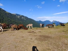 Attention en saison estival les vaches sont présentes et laisse certaines portions de chemin en piteux état (surtout a la fin du parcours) les bâtons peuvent être d'une grande aide !!! Actuellement route barrée au début de la rando car tronçonnage de sapin.