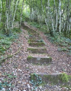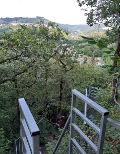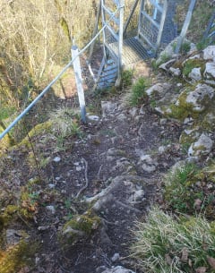 Promenade inadapté aux familles avec jeunes enfants (ou grands-parents !) Descente très pentue, heureusement qu'elle est aménagée avec un câble/ rampe.