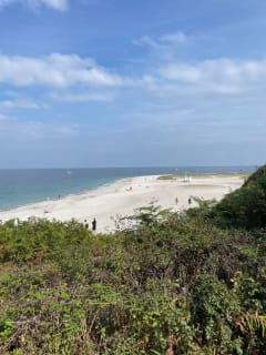 À seulement cinq minutes de traversée en bateau depuis Port-Blanc, une île vous tend les bras pour une randonnée iodée : l'île aux Moines, avec la pointe de Brouel. Surnommée la "perle du golfe du Morbihan", elle est la plus grande des îles du golfe du Morbihan et charme par sa douceur de vivre. Avec ses 5 kilomètres de long et sa forme de fer à cheval, elle se découvre idéalement à pied ou à vélo, car la circulation automobile y est limitée. Pour une visite à la journée ou des vacances paisibles, partez en randonnée sur l’île aux Moines et la pointe de Brouel avec notre app de rando Decathlon Outdoor pour découvrir l'une de ses plages ou en faire le tour, via son sentier côtier.