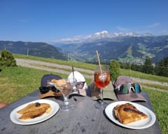 Prachtigste wandeling van onze vakantie. Niet de moeilijkste. Gras was net gemaaid, helder weer, adembenemende uitzichten op de Mont Blanc. We hadden beter tot aan de parking halfweg gereden, het laatste stuk stijgen tot aan de hut ligt er niet goed bij om met een gewone auto te doen.