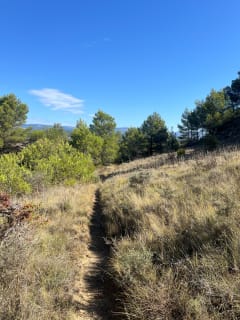Balade entre Villegailhenc et Pennautier sur chemin de terre et sentier. Passage sur les hauteurs qui offrent une magnifique vue sur la chaîne des Pyrénées.