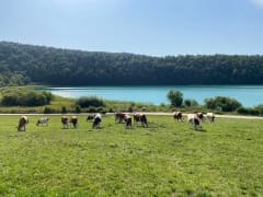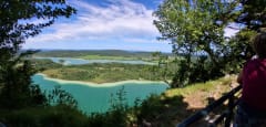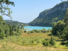 Entre base de loisirs et nature préservée, plages de sable fin et sentiers de randonnée balisés, le lac de Chalain réunit les amateurs de rando et de pédalo autour de ses eaux incroyablement vertes, résultat d’un processus géologique enclenché il y a plusieurs milliers d'années. Au pied du premier plateau du massif jurassien, ce lac d’origine glaciaire étale ses 232 hectares de lagon turquoise entre Fontenu, Marigny et Doucier, falaises calcaires et forêt de résineux. La beauté du site naturel, le faible dénivelé et la possibilité de se baigner en font une destination rando familiale parfaite.