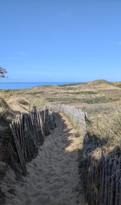 Une superbe ballade, un peu difficile avec de jeunes enfants car de beaux dénivelés dans le sable. Attention quelques parties du chemin du début sont inaccessibles car les falaises s effondrent. De ce fait nous avons dû faire quelques détours ( par la plage et l' intérieur du village d Ambleteuse ) Le retour, après Ambleuse, comporte une partie super depaysante dans les dunes, sous les pinèdes mais se termine sur le bord de la route. Moins sympa! Merci en tout cas pour ce beau partage.