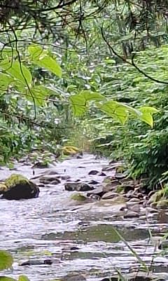 Le chemin est bloqué a mi-parcours pour traverser la rivière.