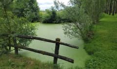 Jolie balade dans le marais du Langon. Petites passerelles, étangs de pêche, moitié chemins blancs et chemins enherbés. Balisage jaune. 4 chemins différents au départ de cette balade. Parking au point de départ