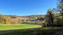 Pour découvrir l'église classée de Ste-Quitterie, ce circuit traverse alternativement de larges plateaux plantés de vergers et des combes boisées par des chemins escarpés.