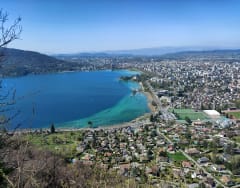 Après avoir rejoint l'ancienne gare de téléphérique, on atteint successivement le Mont Baron puis le Mont Veyrier, qui offrent des vues sublimes sur le lac d'Annecy !