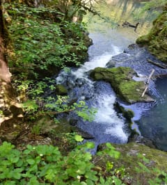 On revient par val du Sesserant, dont les eaux sont d'une limpidité et d'un bleu angéliques. Un bleu qui se marie à merveille au vert des épicéas, deux couleurs qui vont si bien à la région de Baume-les-Dames...