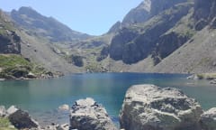 Randonnée assez pentue mais régulière et souvent arborée, appréciable par forte chaleur. Pas mal de monde quand même, ne pas y aller en pensant être isolé au lac mais il y a de la place pour se ménager un coin tranquille.